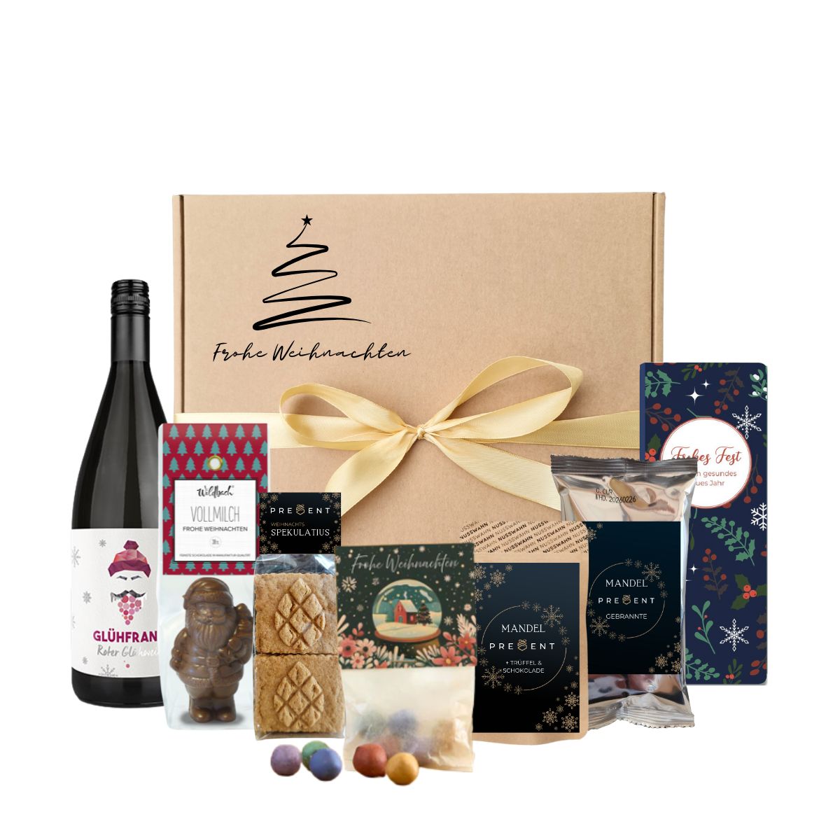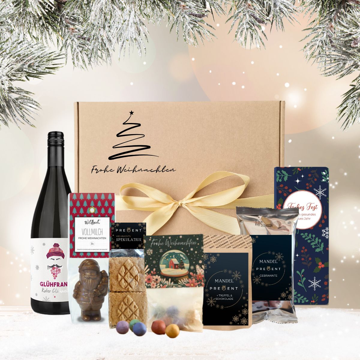 Stilvoll verpacktes, hochwertiges Weihnachtsgeschenkset mit ausgewählten Feinkostprodukten.