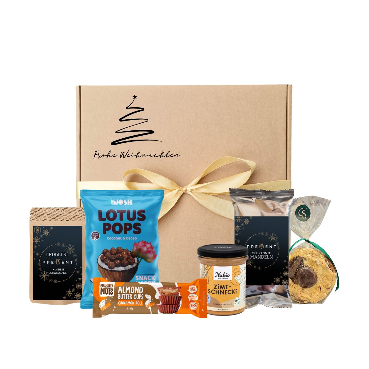 Stilvoll verpacktes, hochwertiges Weihnachtsgeschenkset mit ausgewählten Feinkostprodukten.