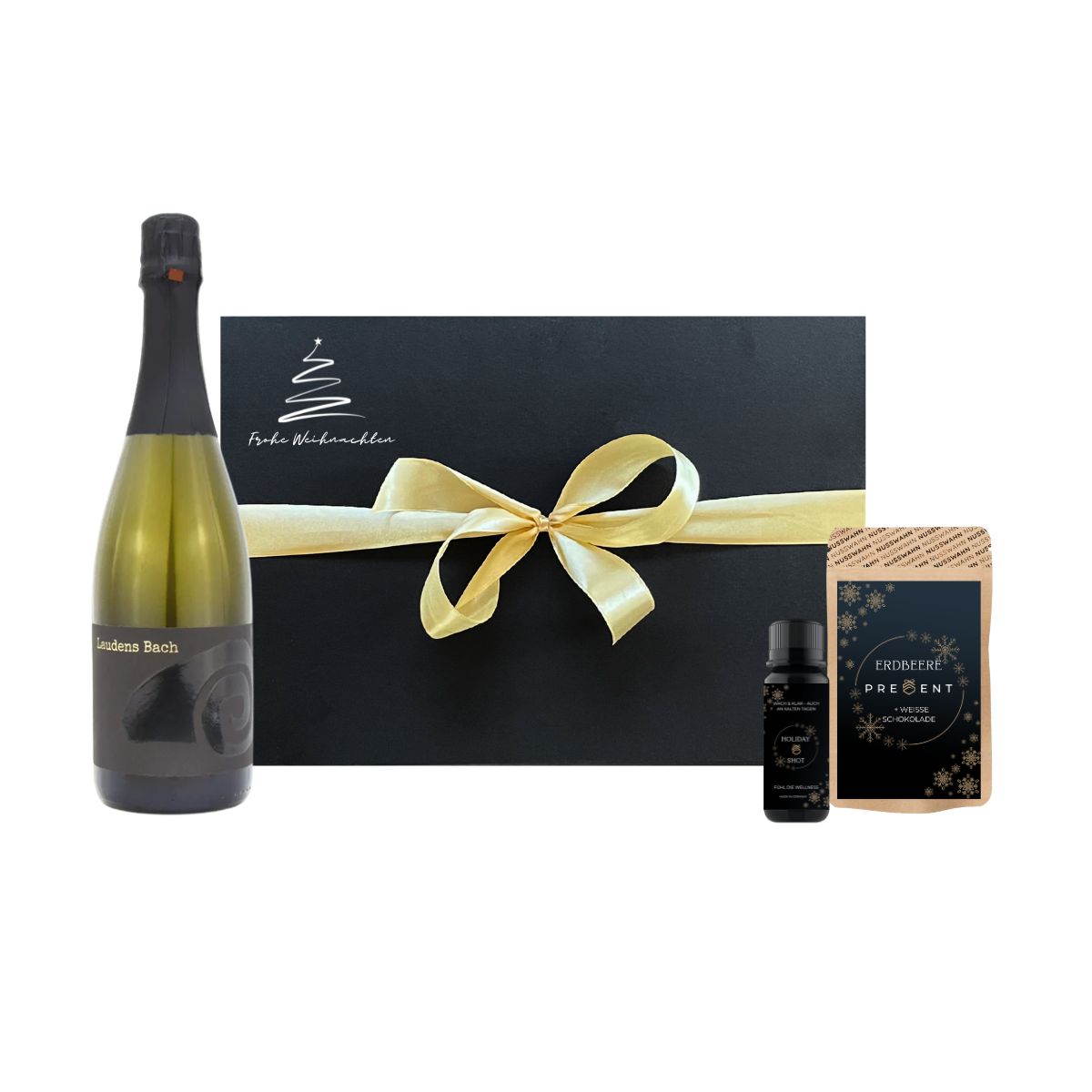 Stilvoll verpacktes, hochwertiges Weihnachtsgeschenkset mit ausgewählten Feinkostprodukten.